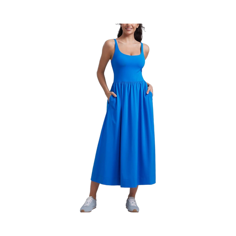 क्रेज योग महिला वर्ग गर्दन मैक्सी टैंक पोशाक गर्मी आकस्मिक फ्लैवी आस्तीन आउटलेस आउटलेस आउटफिट साइड जेट्स साइड शिफॉन कपड़े प्राकृतिक सामने