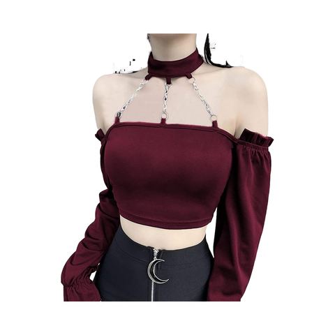 Của phụ nữ Y2K Gothic Punk Ống Tops mùa hè Chic sexy chuỗi kim loại dây cổ Crop không tay backless vest cho Đảng ngắn